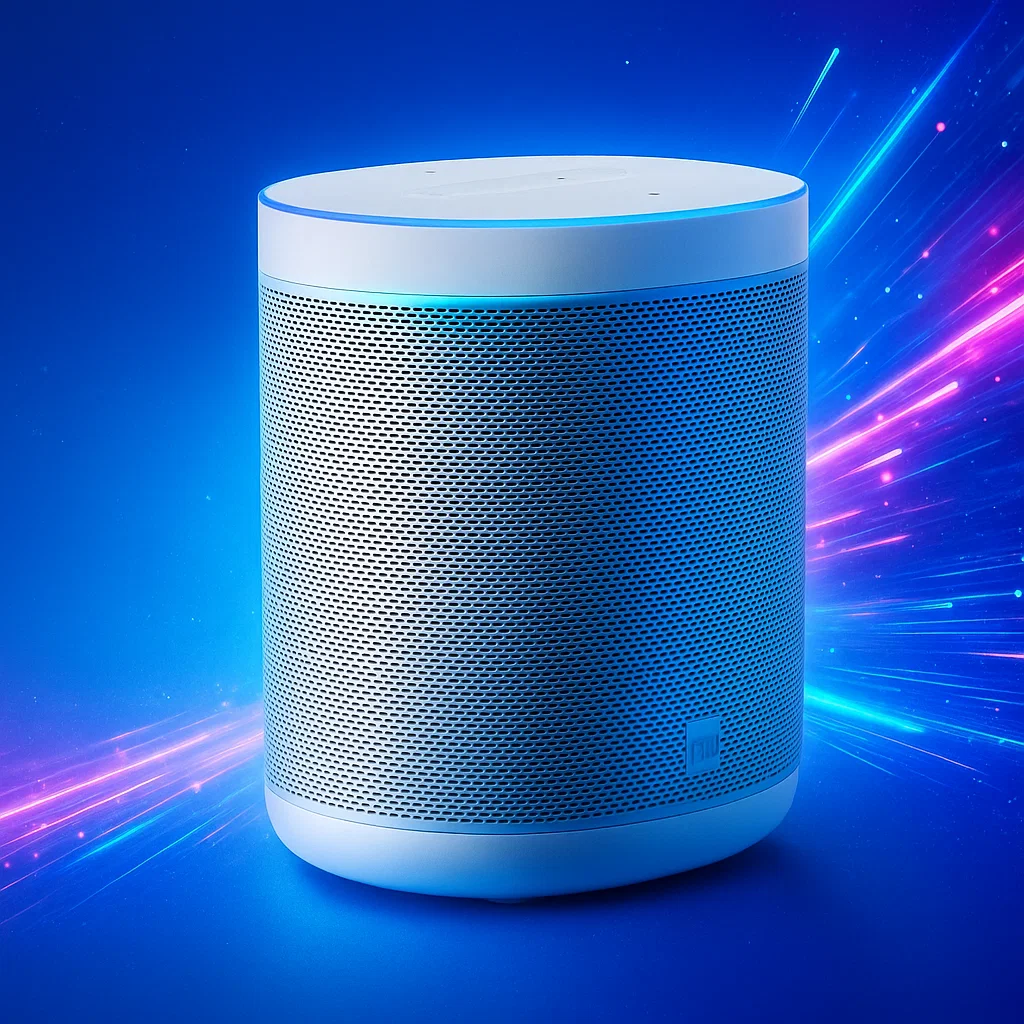 A smart speaker combines audio playback with internet connectivity and AI voice assistants. The Xiaomi Smart Speaker, available at Valotronics, offers Google Assistant integration, Chromecast, and Bluetooth in one stylish package.