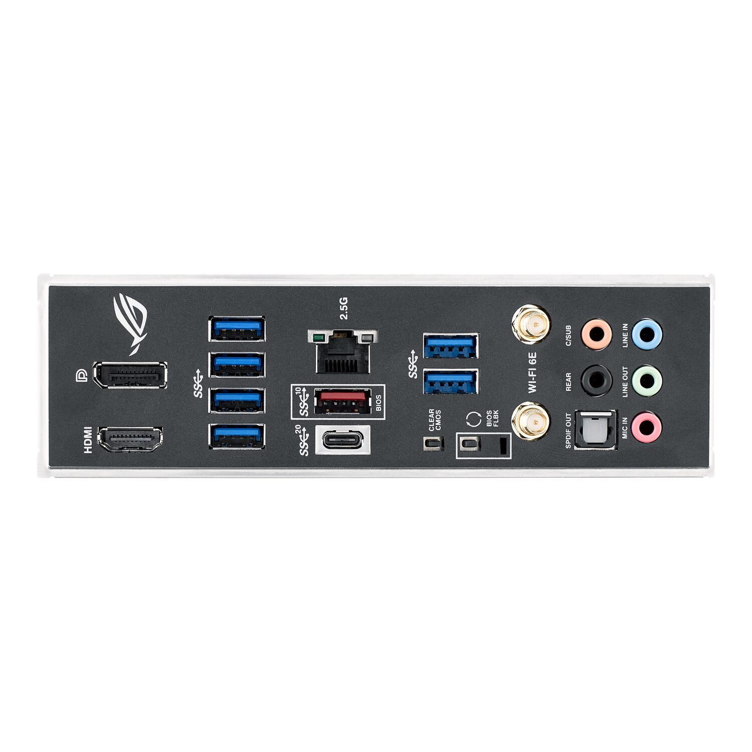 Enhanced cooling is assured via large VRM heatsinks, hybrid fan headers, and M.2 heatsinks that maintain system stability during high-load operations. Advanced connectivity includes rear USB 3.2 Gen 2×2 Type-C®, front USB Type-C®, and HDMI® 2.1 and DisplayPort 1.4 outputs for modern displays. The ROG Strix B760-F Gaming also incorporates intuitive features like Q-LED diagnostic indicators, BIOS FlashBack™, and a pre-mounted I/O shield for streamlined assembly and maintenance.