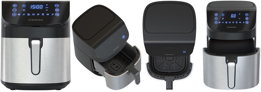 Bennett Read Digital Air Fryer – 6.6 Litres Capacity, 1600W of Air-Frying Power, Premium Stainless Steel Design, Extra-large Non-Stick Drawer With Removable Fry Tray, Easy-to-Read, Digital Touch LED Display, One-touch Present Functions, Automatically Set Temperature And Cooking Time, Auto Shut-off And Pause-to-look, Dishwasher-safe Parts for easy Clean Up, Retail Box, 1 Year Warranty.
