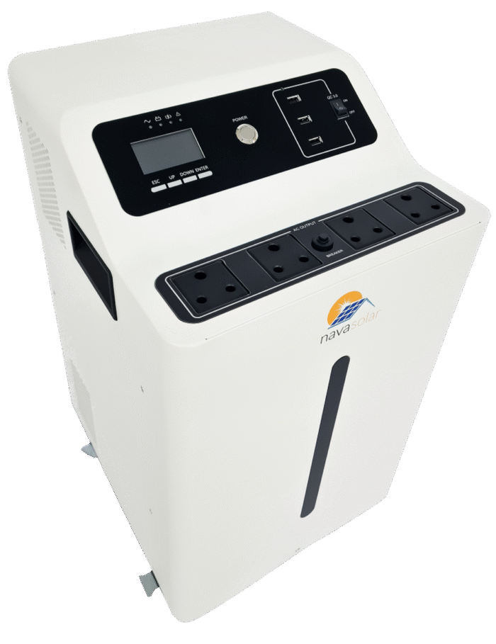 This is a multi function All In One ESS, combining functions of inverter, solar charger and battery charger to offer uninterruptible power support with portable size.
