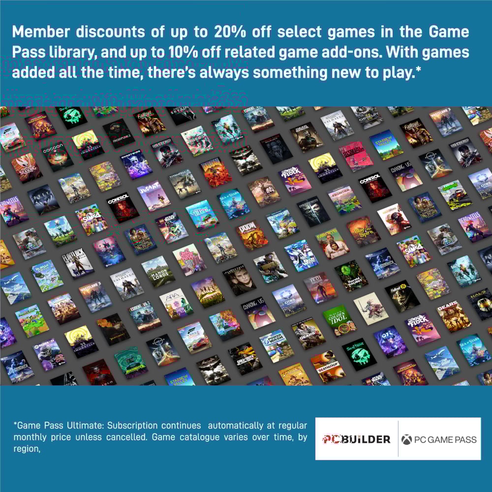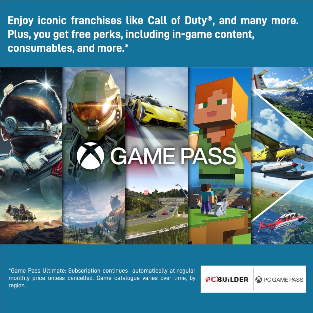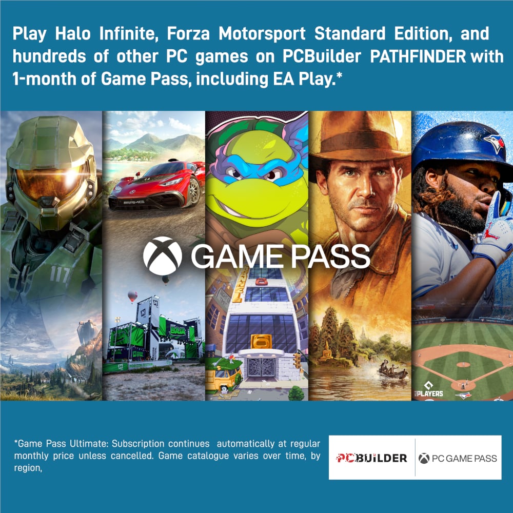 The PCBuilder PATHFINDER Windows 11 Gaming PC also includes one month of PC Game Pass including EA Play. Play over 100 high-quality PC games, in various genres such as Halo Infinite, Forza Horizon 5, and Minecraft on your new gaming rig. With new games added all the time, there’s always something new to play from day one.